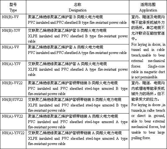 适用范围 本产品适用于工频额定电压0.6/1kV及以下配电线路或工业装置中有耐火要求的固定敷设场所使用。 The product is suitable for use in power distribution lines or fixed installations with rated power-frequency voltage up to and including 0.6/1kV.