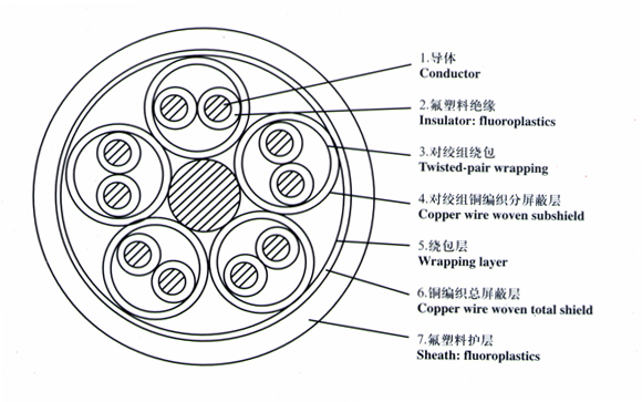 3.电缆的不延燃性(阻燃特性):应通过GB12666.5-90中B类成束燃烧试验。单根电线电缆垂直燃烧试验应通过GB12666.2-90 4.卤酸气体释放量,符合IEC754-1 5.燃烧气体的PH值和导电率,符合IEC754-2 PH≥4.3 电导率≤10μS/mm。 基本型号及名称