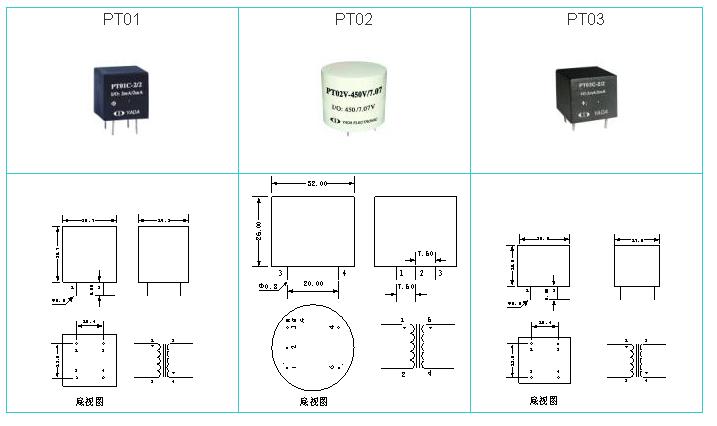 PT02实际上是一款电压型精密电压互感器,将电压信号隔离变换成适当的电压信号,额定输入电压通常有100V、450V等,额定输出电压通常4V、7.07V等,还可根据客户要求另行设计,后面可不处理直接接A/D采样电路。