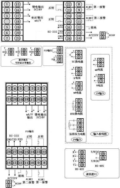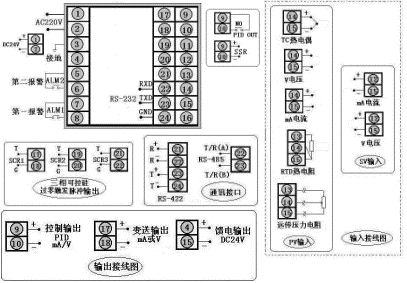 | 外给定控制,通讯方式RS232,输出方式继电器输出,PV输入类型为Pt100,SV输入类型为4~20 mA,第一报警为上限报警,第二报警为下限报警,DC24V馈电输出,供电方式为直流24V供电。 |
