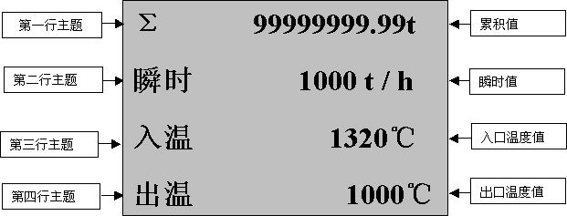 | 带记录,单路热量表,通讯方式为RS-485,输出方式为继电器输出,流量输入类型为4~20 mA,入口输入类型0~10 mA,出口输入类型1~5V,第一报警为下限报警,第二报警为上限报警,AC220V供电,横表。 |