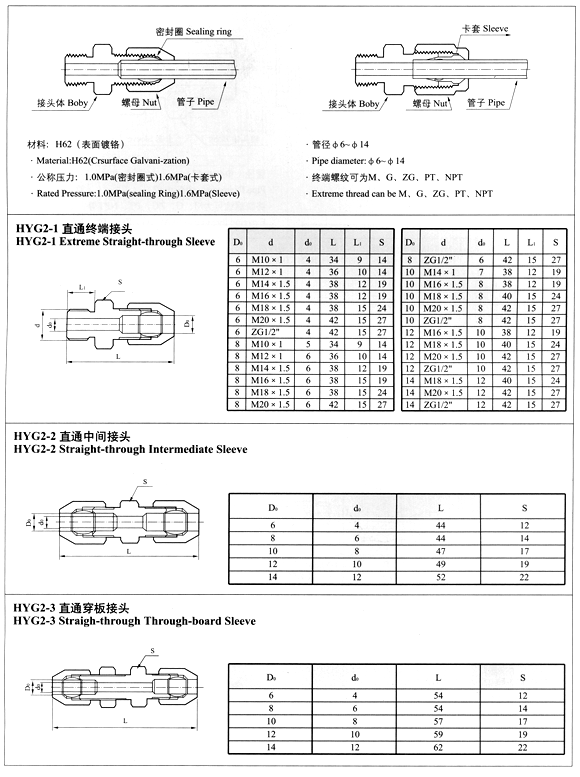 HYG1 系列钢制单卡套式管接头