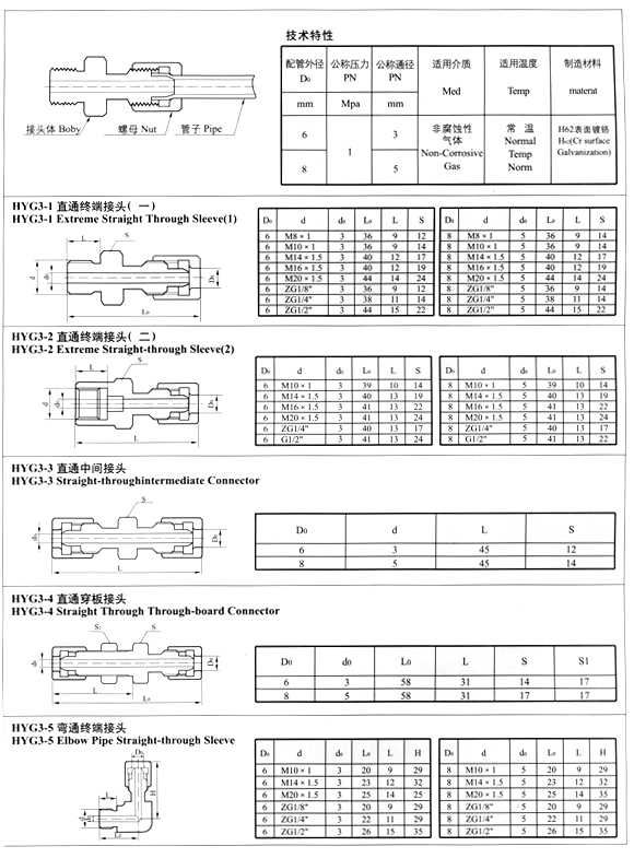 HYG2 铜制气动管路接头(铜管、尼龙管用)